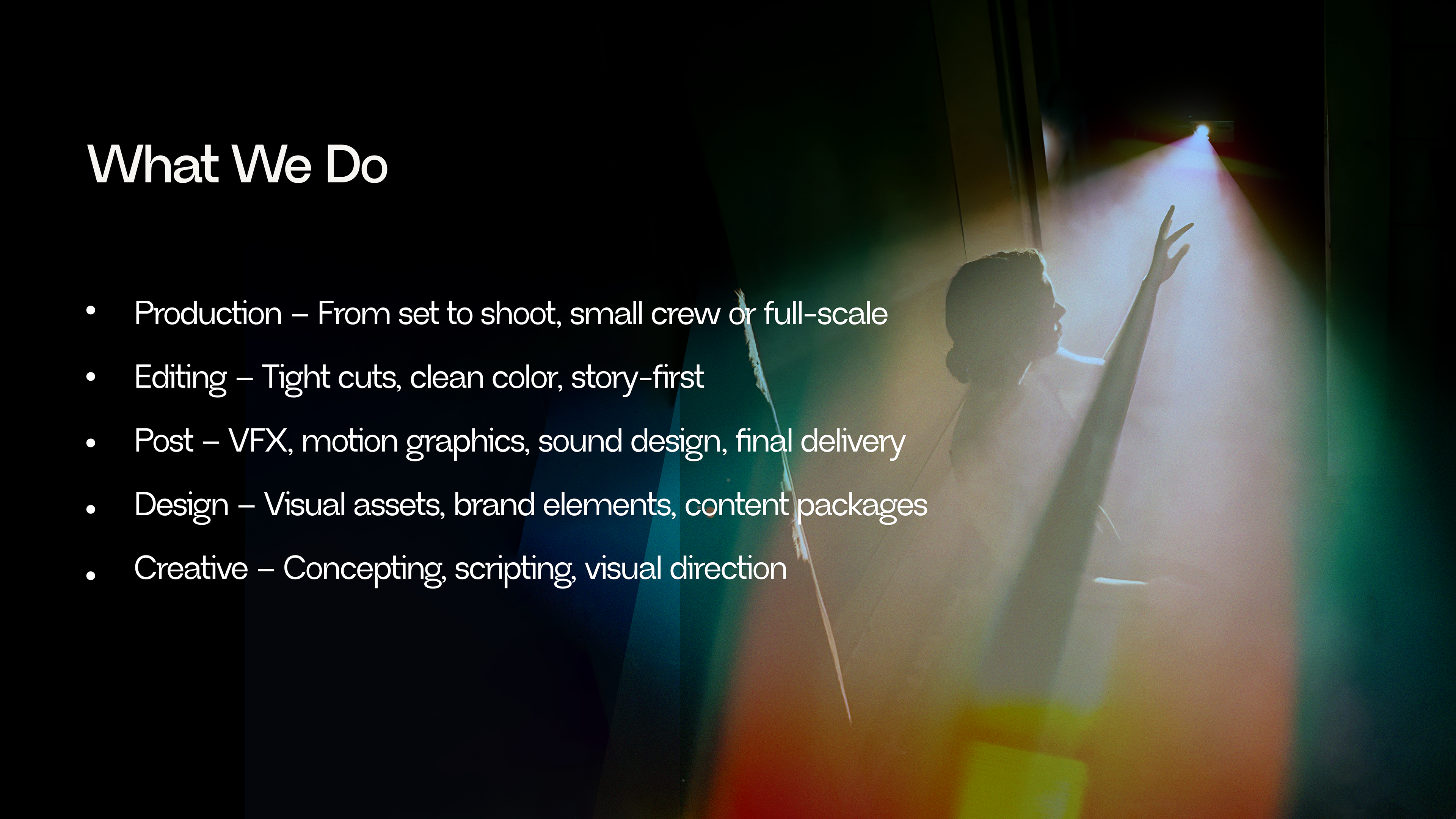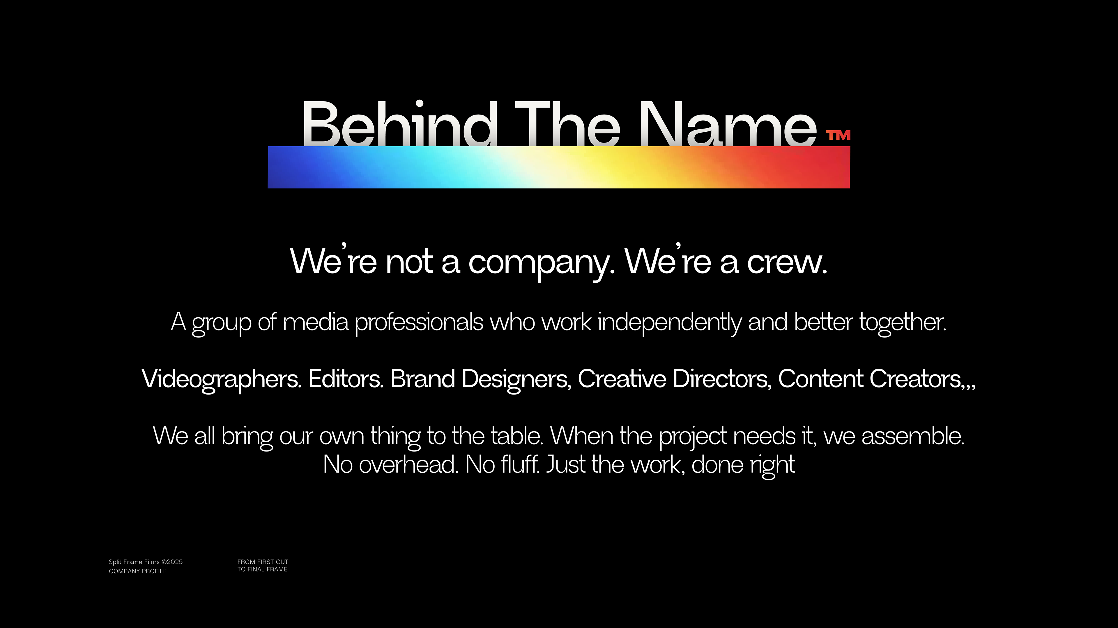 We are Splitframe A Cairo-based production house dedicated to creating film craft worth spreading across Egypt and the wider region.